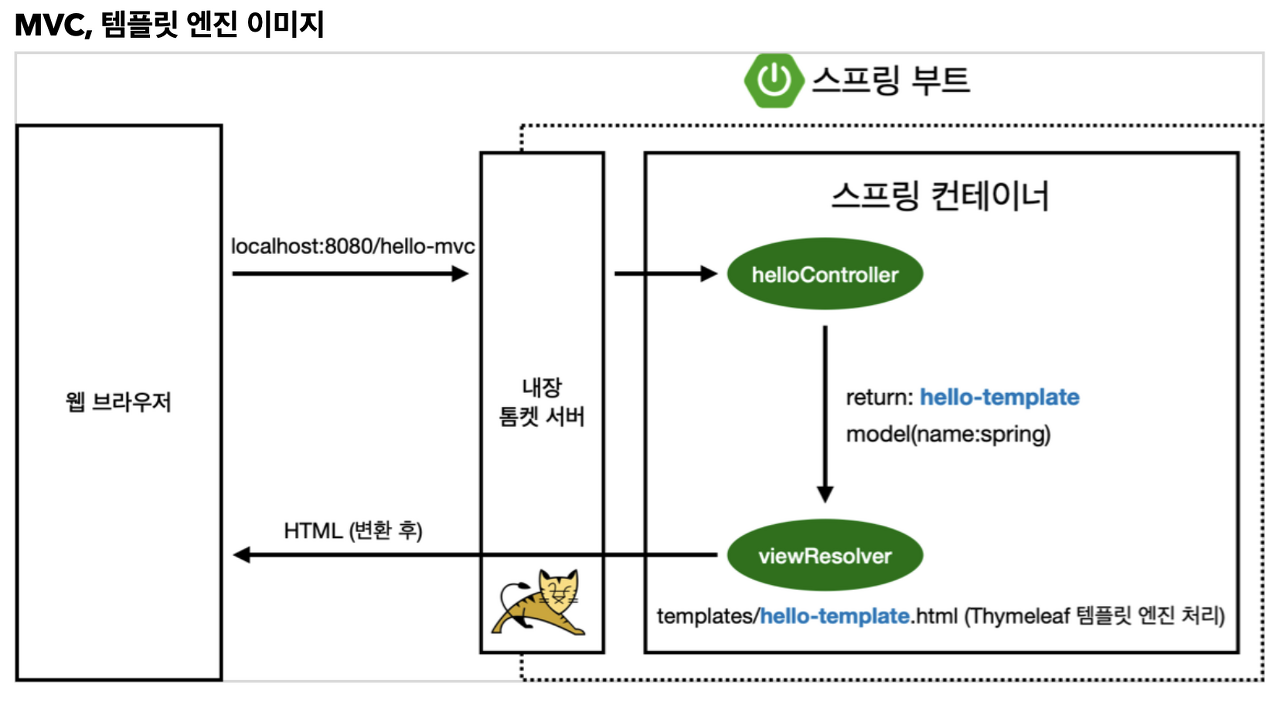 1️⃣ localhost 링크 뒤에 hello-mvc 라는 링크를 붙이면,