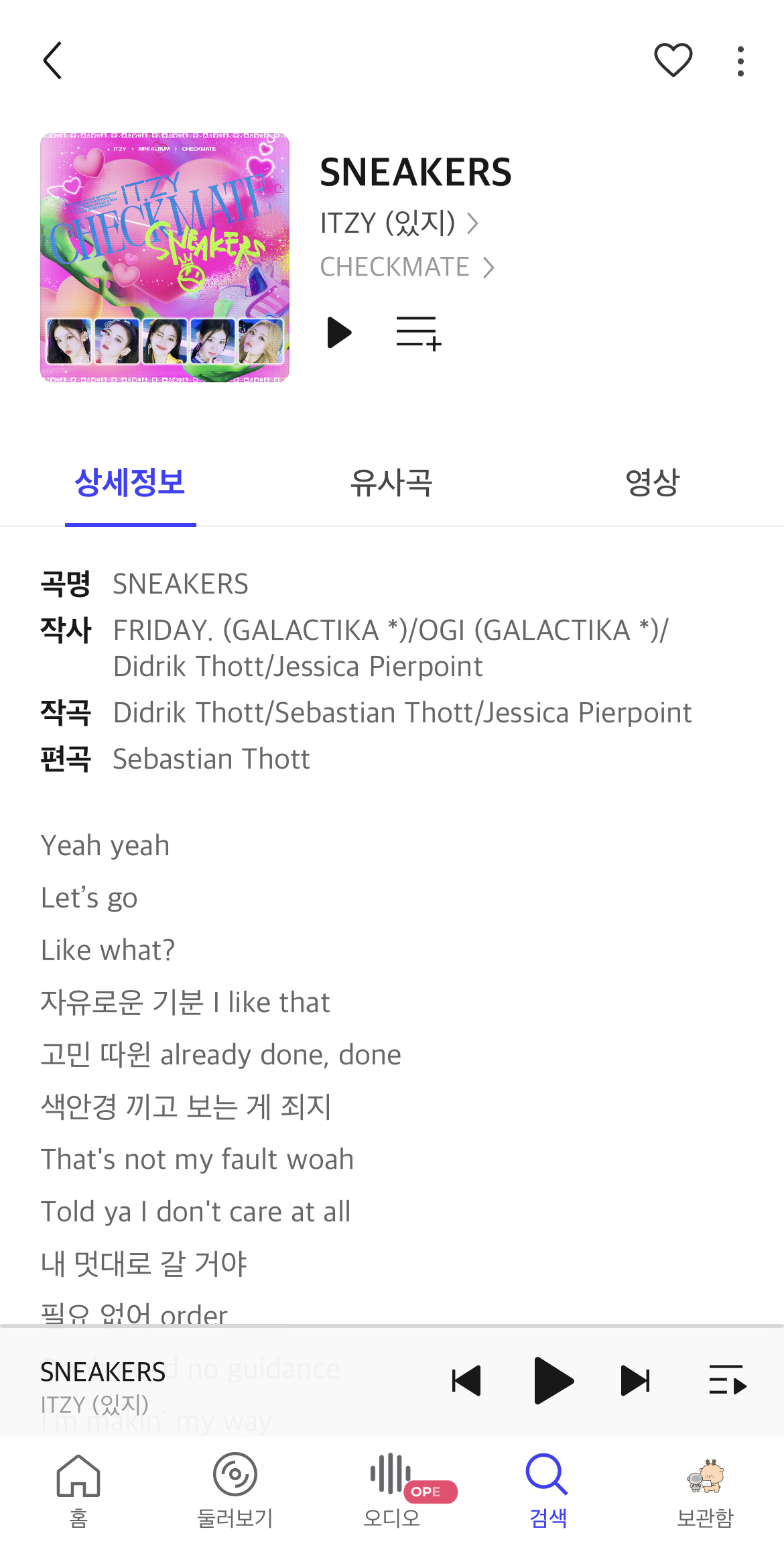음악 앱에서 노래에 대한 상세정보를 선택하면 다음과 같이 나온다.
