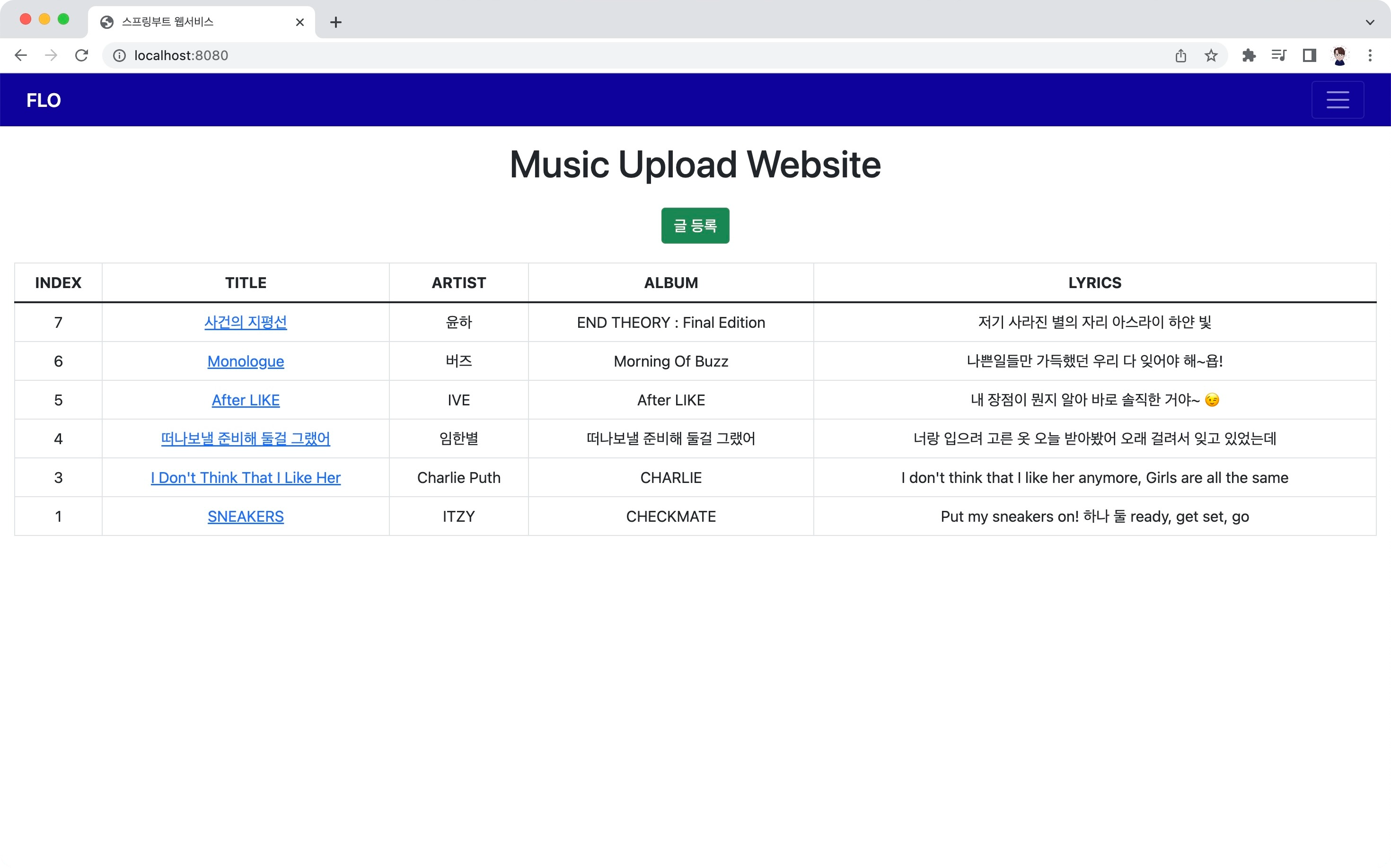 6️⃣ 수정(UPDATE) 및 삭제(DELETE)가 반영된 Home 화면