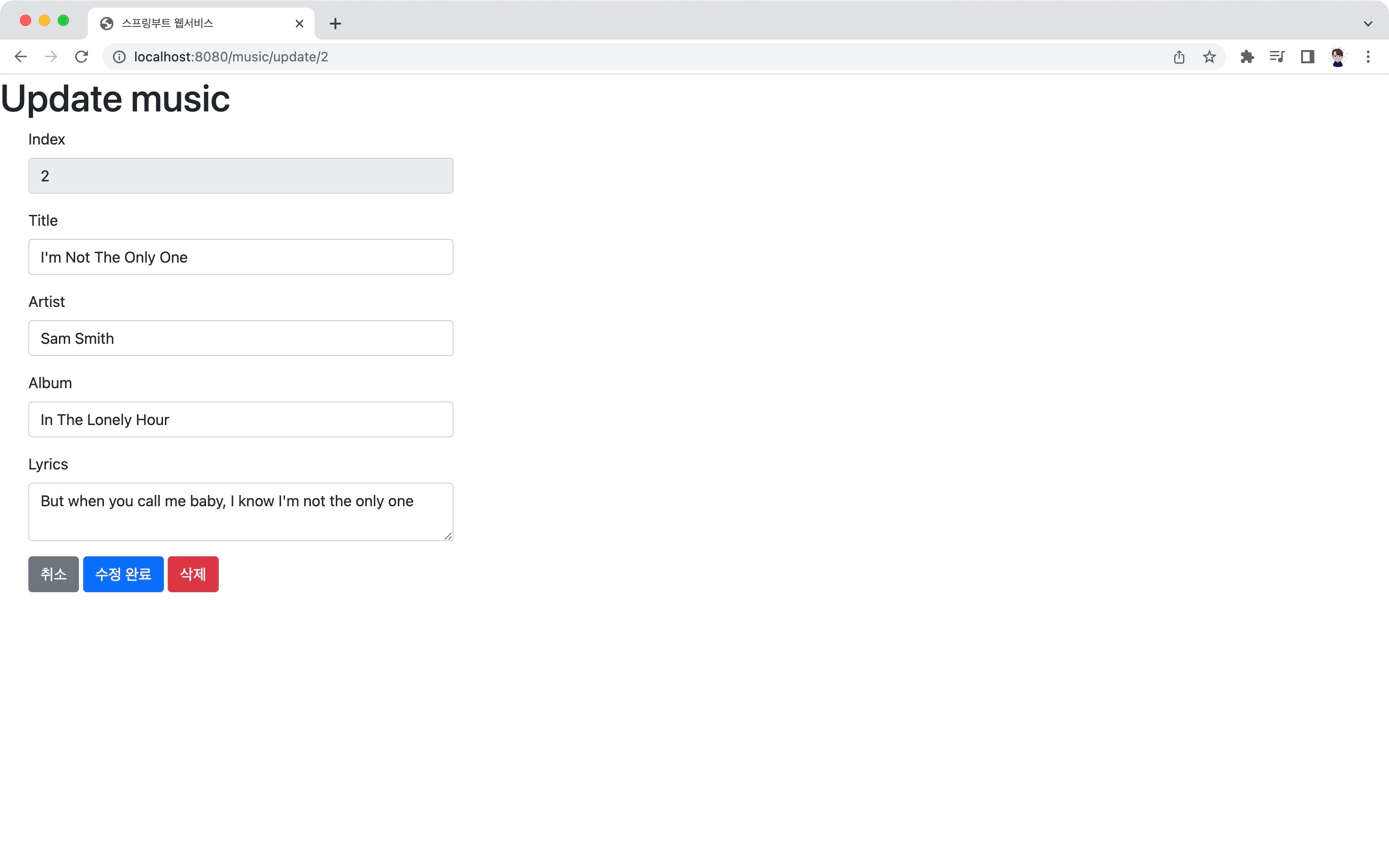 4️⃣ 제목을 누르면 들어갈 수 있는 수정(UPDATE) 화면