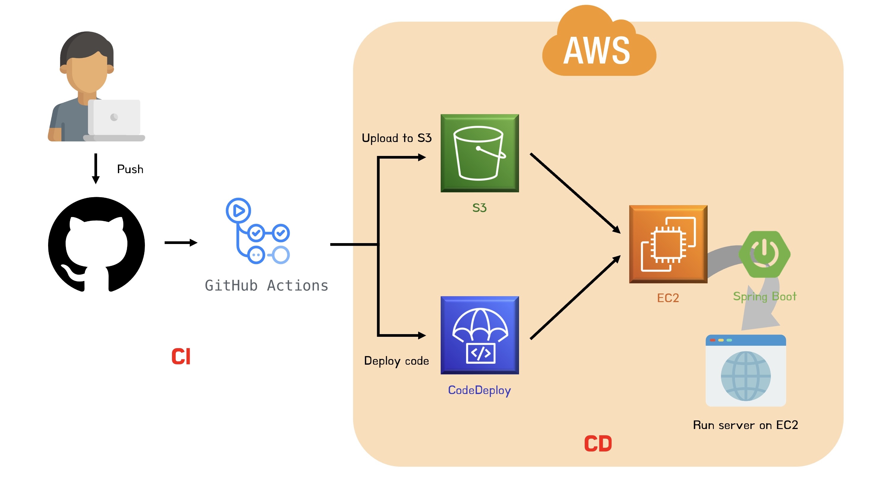 Github Actions를 통해서 CI/CD를 진행할 때 사용할 AWS 서비스는 크게 3가지다.