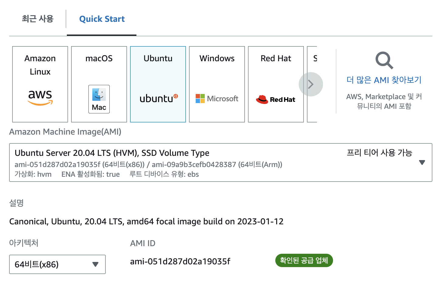 처음 EC2 인스턴스를 생성할 때, ubuntu의 버전을 고르는 화면이 있다.