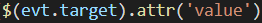 그냥 $(evt.target).attr('value') 하면 되겠네 라고 생각하고 막상 결과를 보면